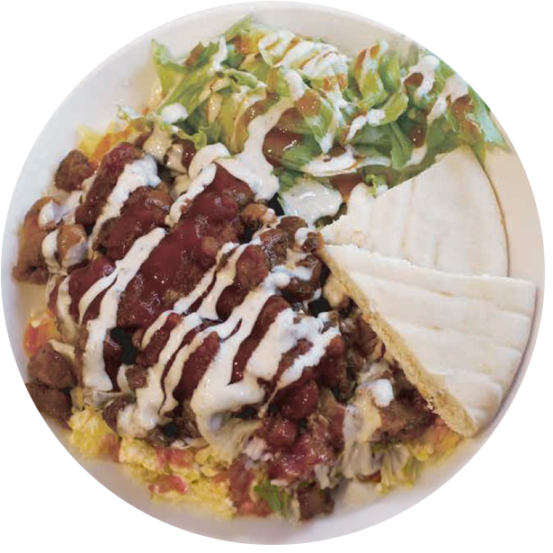 NYの街角で大人気のソウルフード「チキンオーバーライス」は、 スパイシーチキン×ターメリックライス×特製ソースが生み出す、禁断の組み合わせ。 本場の熱気と美味しさを、ぜひアツアツのうちにガブリと召し上がれ!