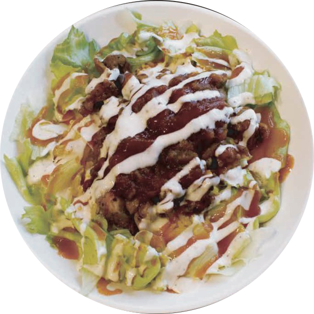 数種類のフレッシュなサラダに当店自慢のチキンを乗せたボリュームたっぷりのサラダです。